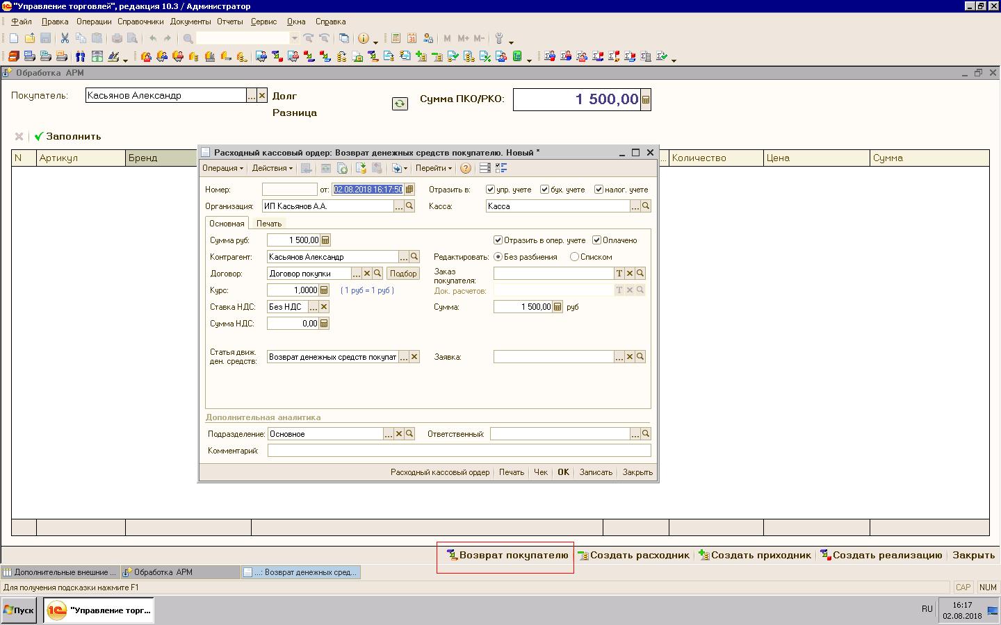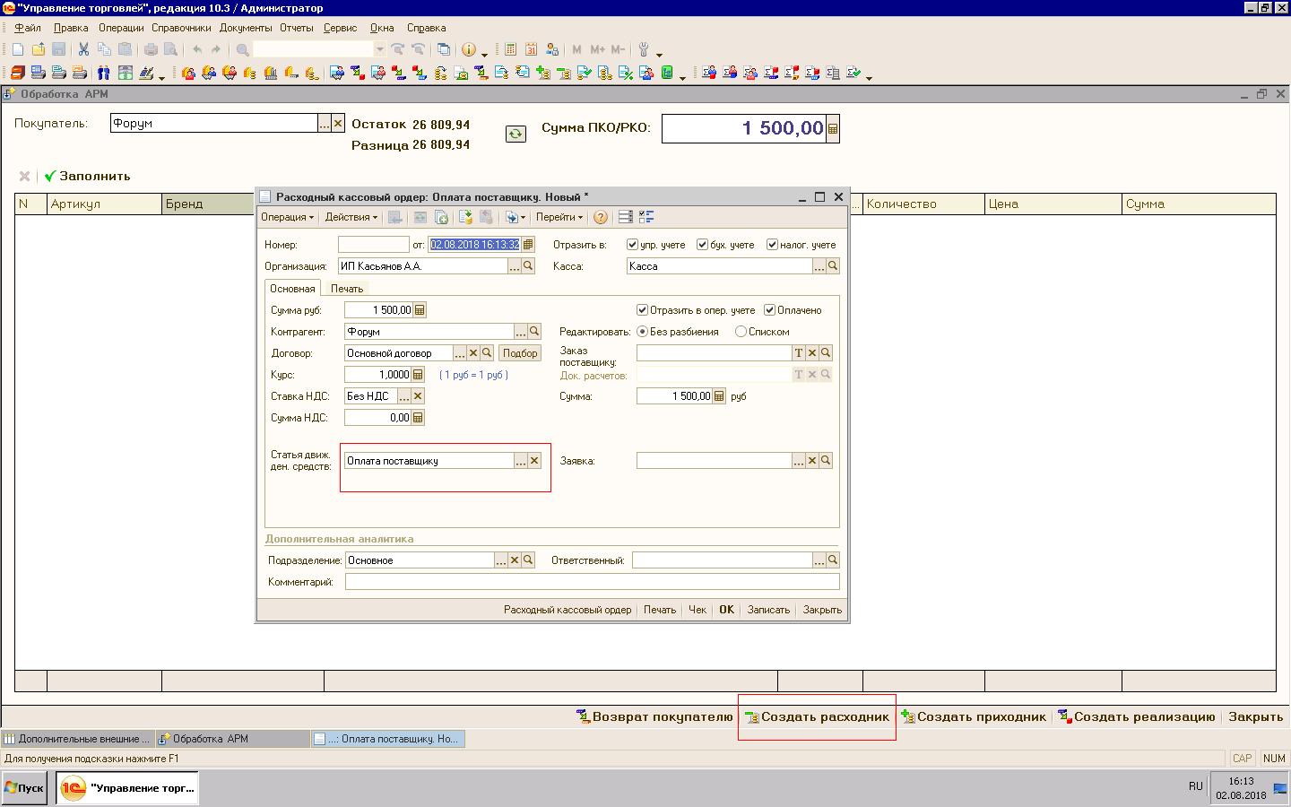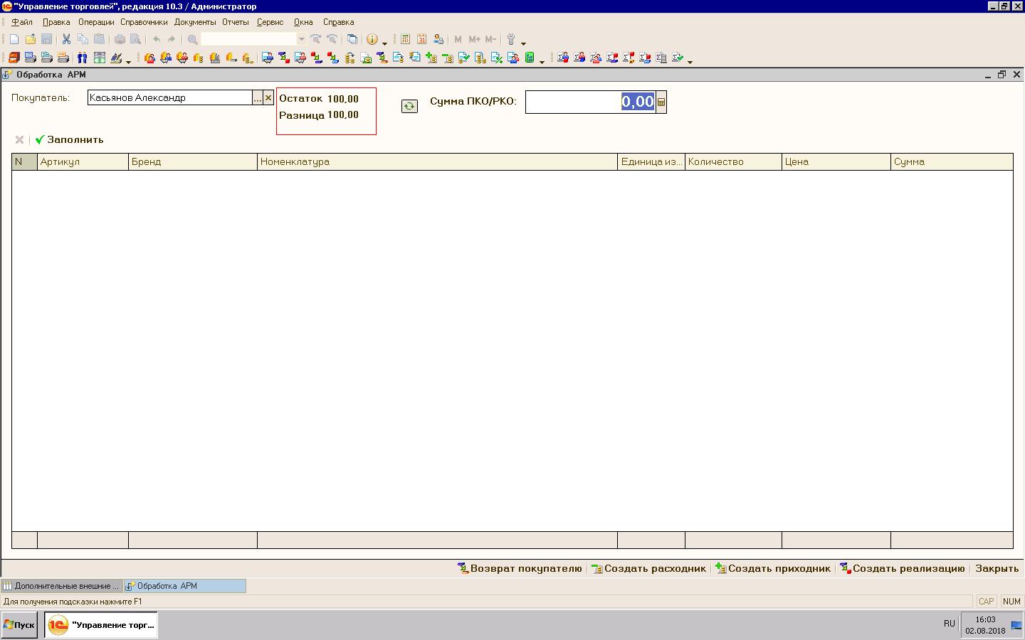 В рабочем месте сведены движения по балансам контрагентов, кнопка для создании приходника с автозаполнением контрагента и суммы, кнопка заполнения поступивших на склад товаров для выбранного контрагента, кнопка создания реализации с автозаполнением, кнопка расходника и кнопка возврата поставщику. (подробнее в скринах)