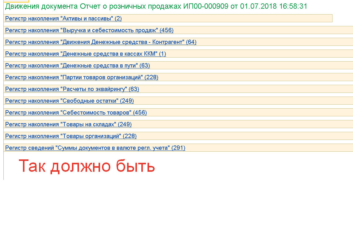 В УТ11.4 некоторые отчёты о розничных продажах проводятся не полностью. Вместо проведения по 12-ти регистрам, происходит проведение по 6-ти регистрам.