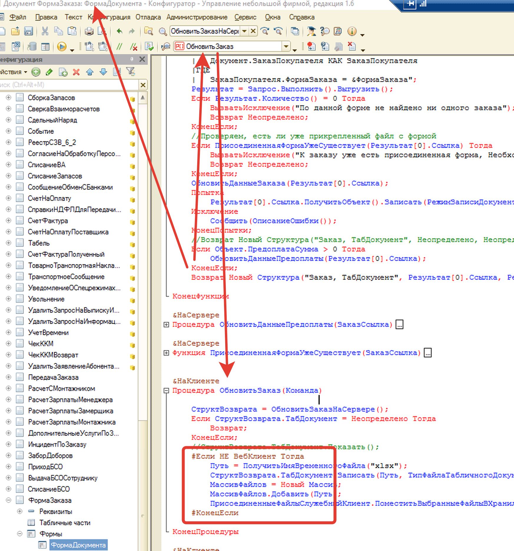 В процедура видно, что стоит проверка на веб клиента. То есть, если это НЕ веб-клиент, то код выполняется. Если эту проверку убрать - пользователь в браузере даже не сможет открыть этот заказ.