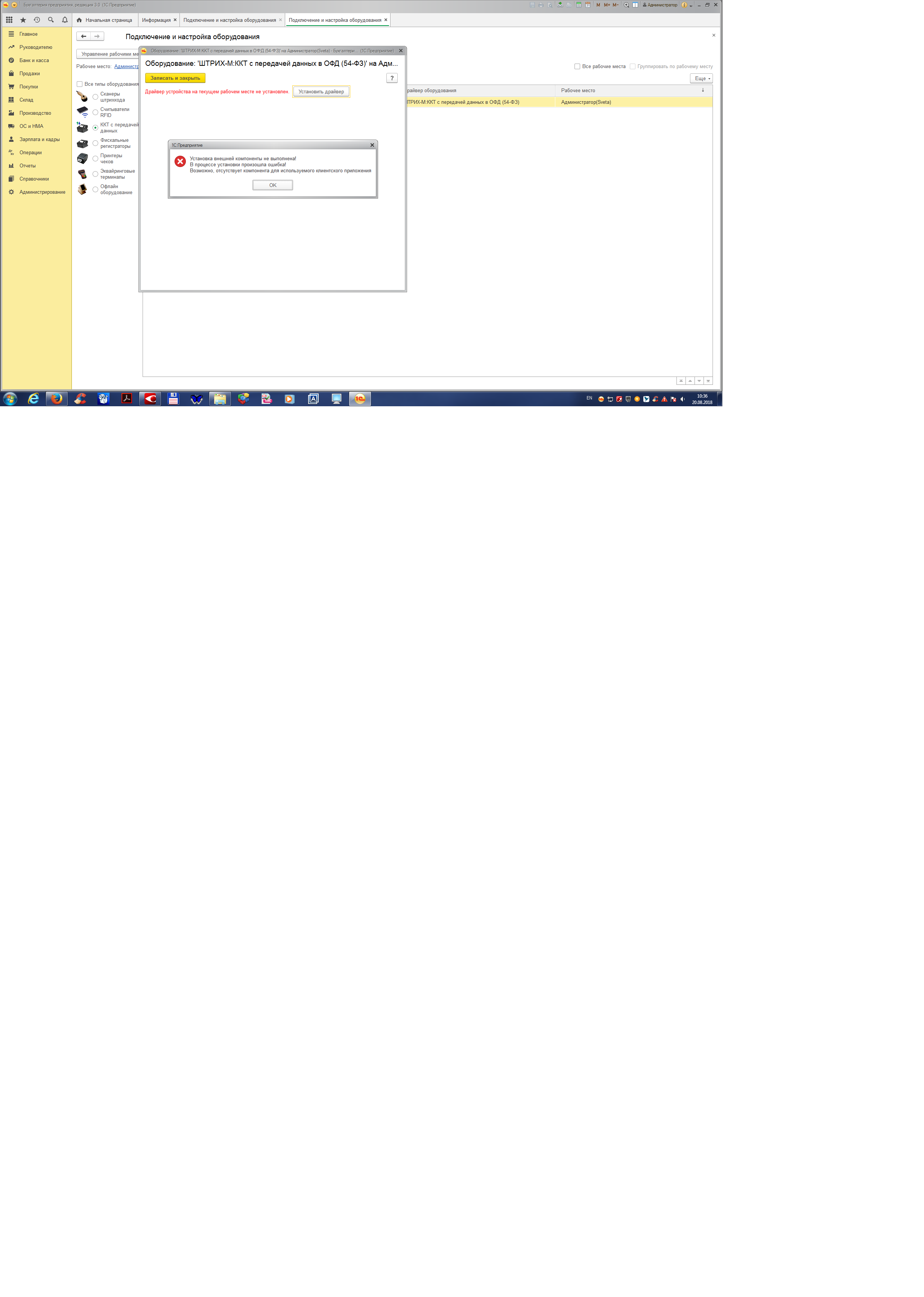 1С:Предприятие 8.3 (8.3.12.1595),конфигурация Бухгалтерия предприятия, редакция 3.0 (3.0.64.48) необходимо установить драйвер для устройства Штрих -ON-LINE, все время выдает ошибку при установке драйвера "Установка внешней компоненты не выполнена