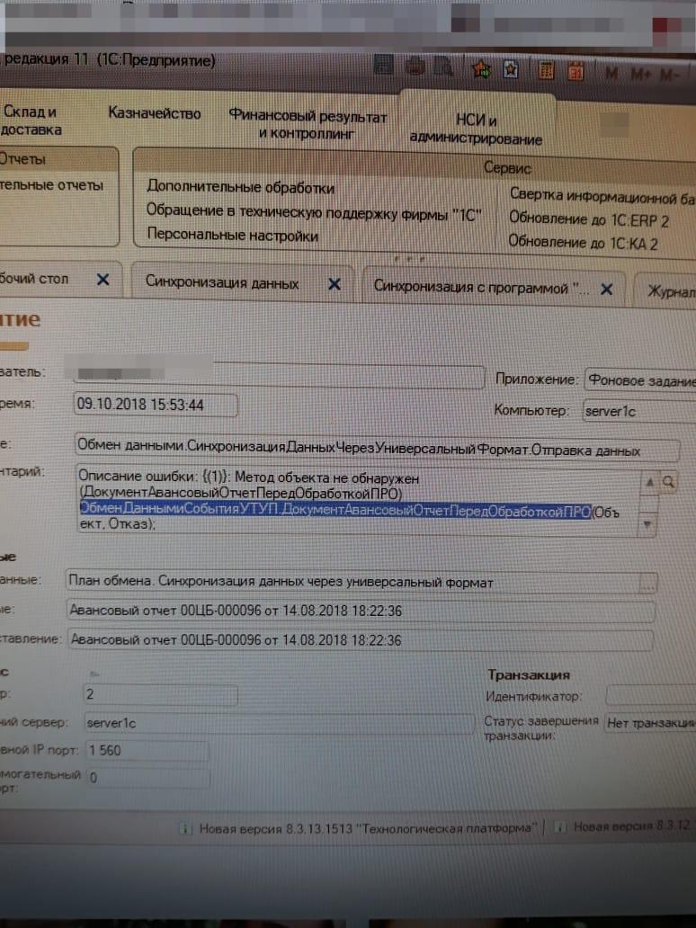 Так же после добавления настройки обмена с БП, документы "Авансовый отчет" не проводятся, ошибка похожа на описанную выше.