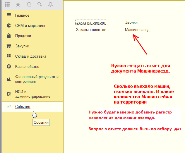 1) отчет по машинозаезд: если изложены все требования к отчету то регистр накопления создавать не обязательно(что в нем накапливать?
