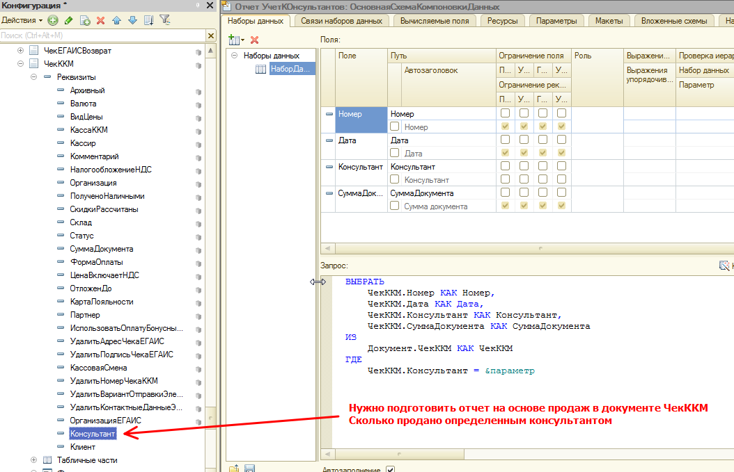 2) отчет по консультанту у вас уже реализован нужно лишь, внести небольшие "косметические" правки