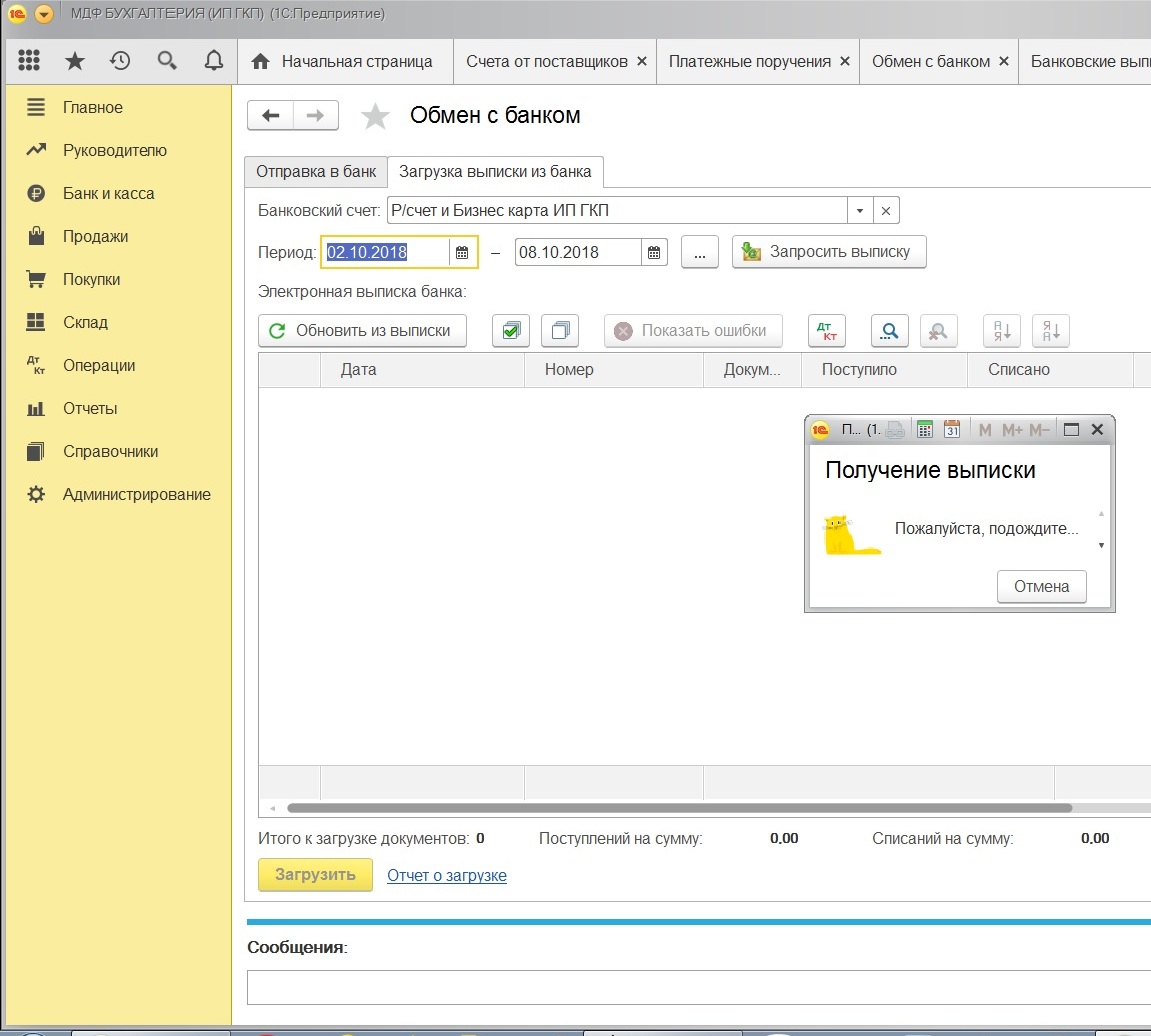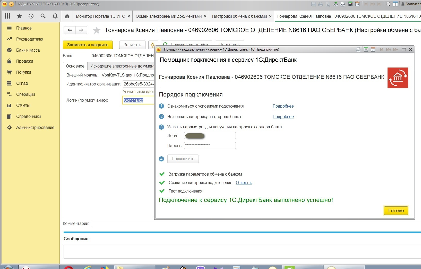 Нужно закончить настройку и подключение Директ Банка в 1С