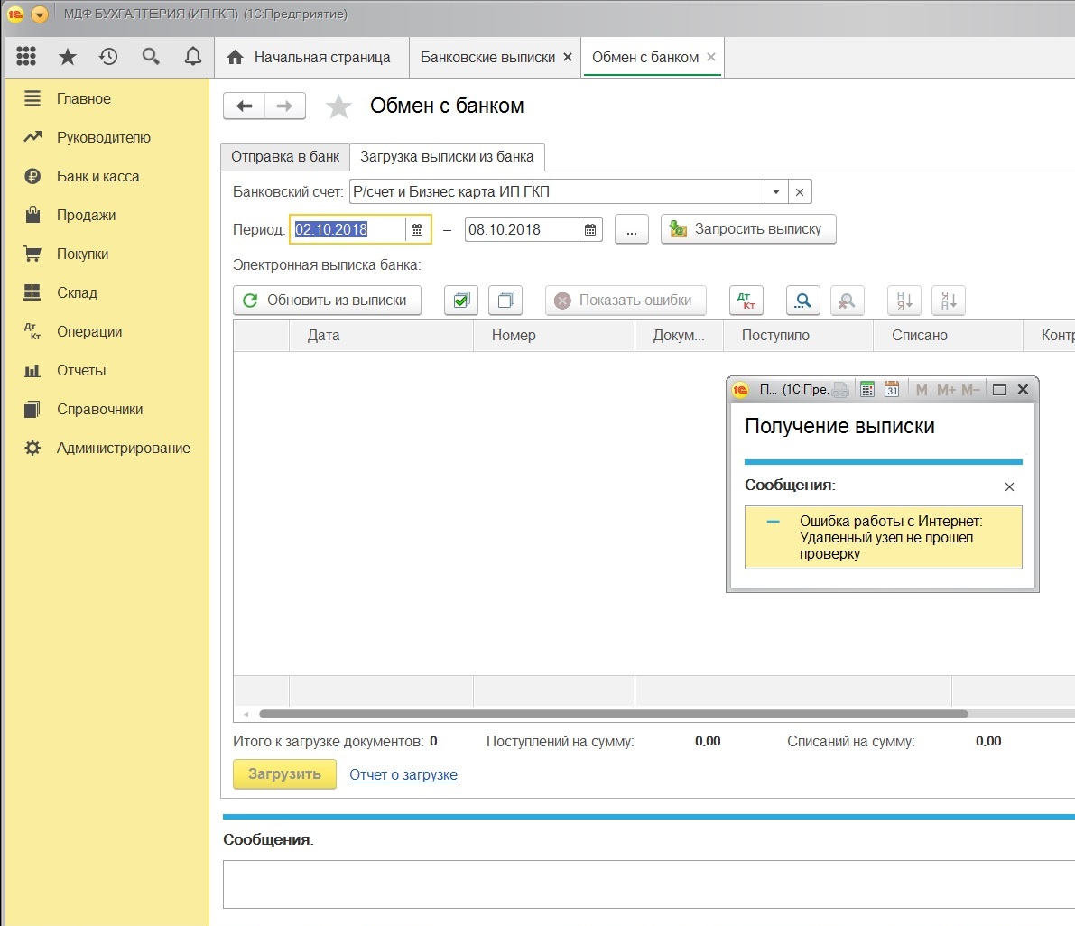 Получение выписки не проходит. Связь показывает, но даёт сбой.