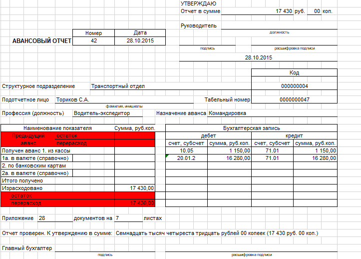 Требуется создать печатную форму "Авансовый отчет" для конфигурации КА 1.1 (на данный момент релиз 1.1.106.1). На картинке красным выделены строки, которые надо убрать, остальное оставить без изменений.