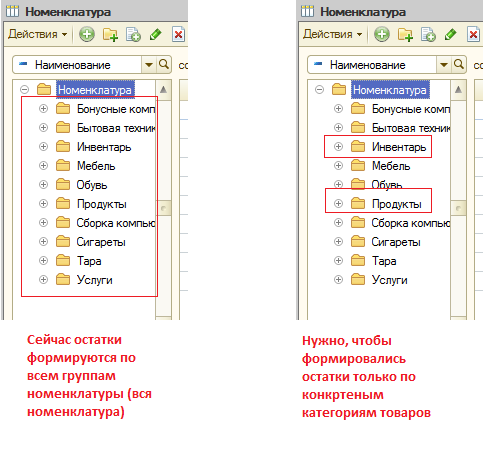 Выгружаю из базы остатки + цены, но файл формирует очень долго, грузится все остатки,--> нужно убрать лишние разделы - оставить только два подраздела из всего списка номенклатуры.