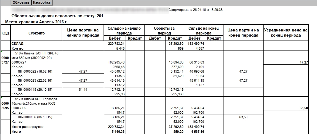 Отчет по себестоимости номенклатуры для УТП Украина (БУ)