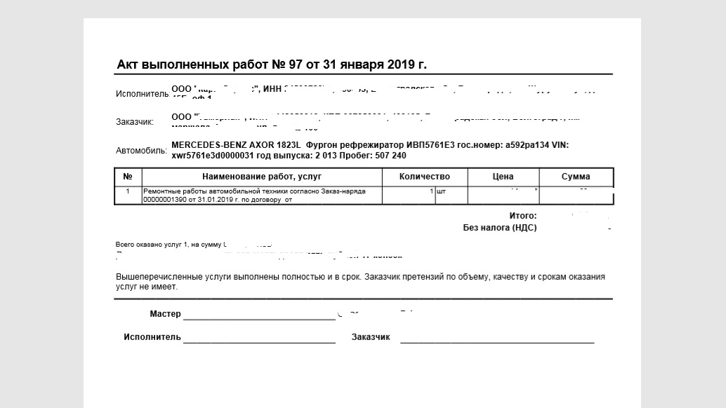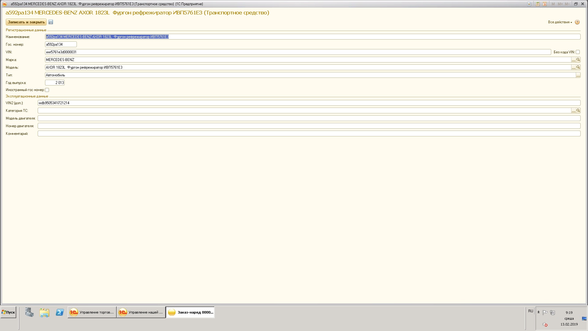 - транспортное средство, выбираемое в заказ наряде, должно иметь реквизиты, как показано на скриншоте;