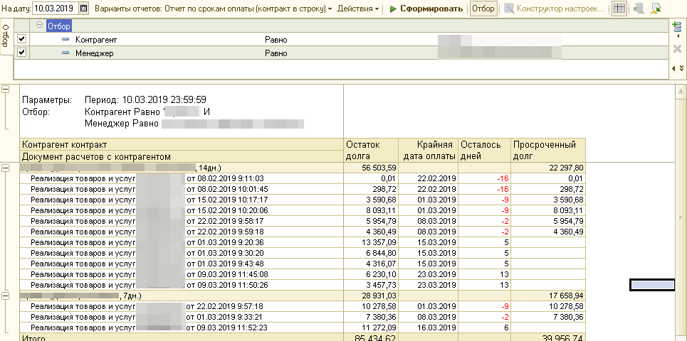 УТ 10.3 Внешний отчет по просроченной задолженности с разбивкой по дням