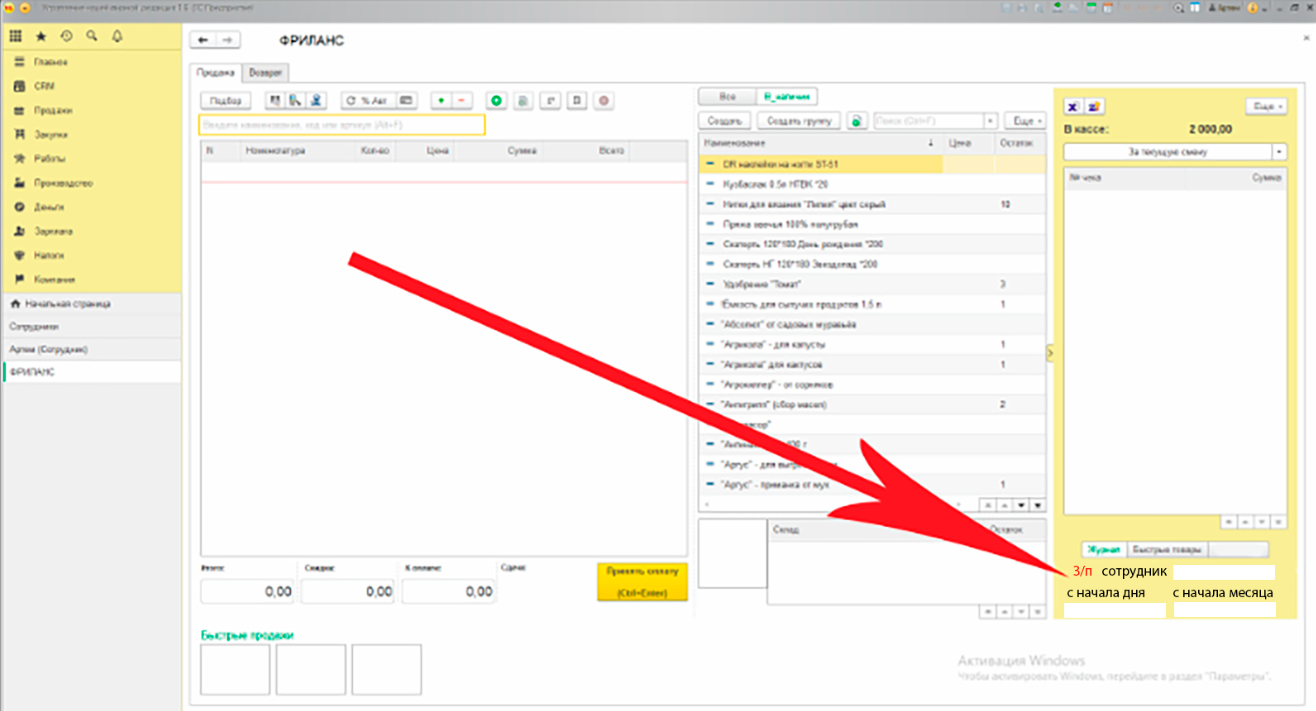 2. Вывести в РМК надписями: Зарплата: Сумма за день = сумма продажи каждого товара в чеке - кол-во в чеке * цену закупки - Константа (отнимать раз в день) и от полученной суммы получить процент из пункта 1 , с начала месяца = тоже самое только берем чеки с начала текущ. месяца.