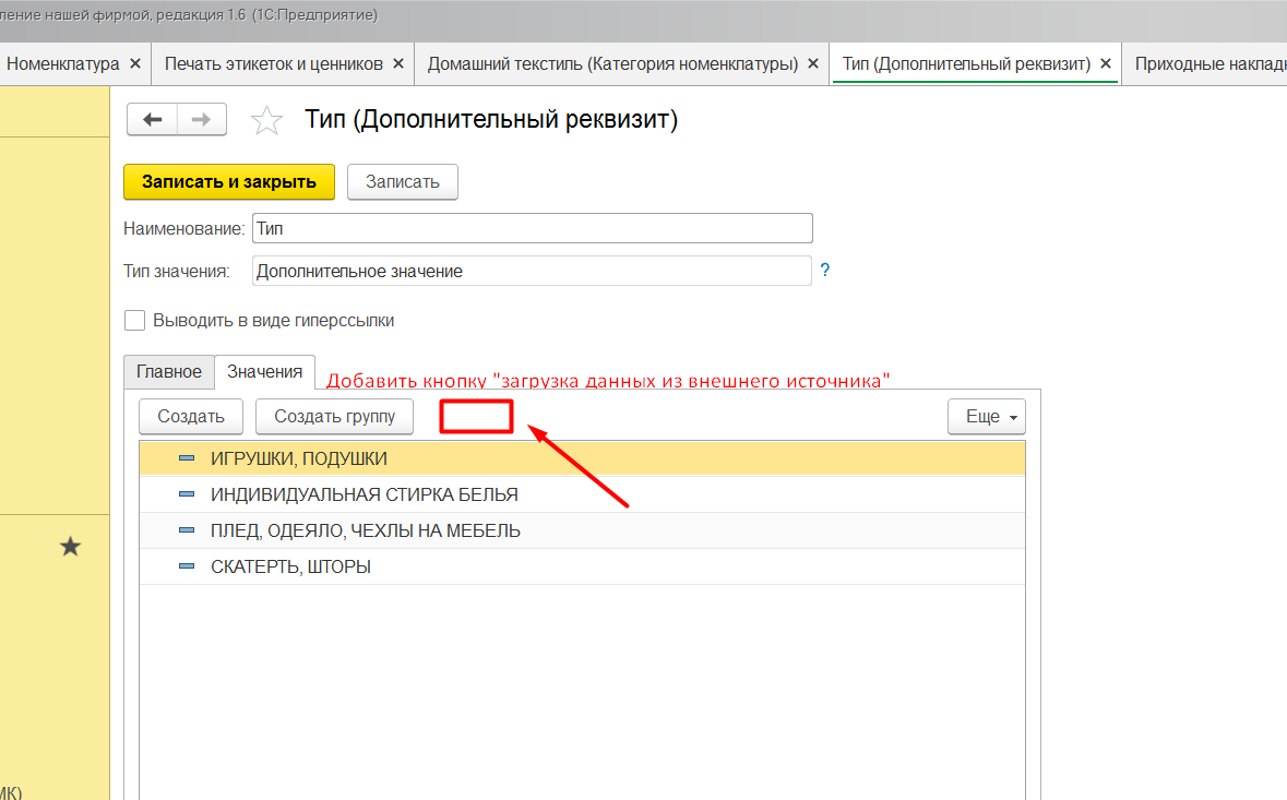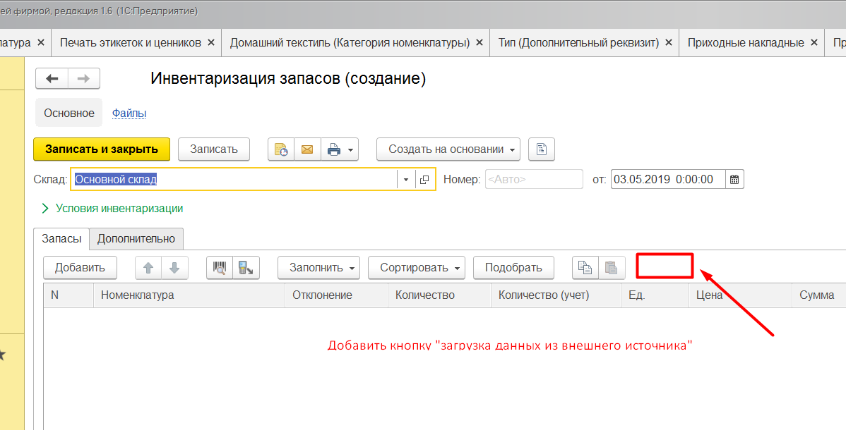 Добавить кнопку «Загрузка данных из внешнего источника».
