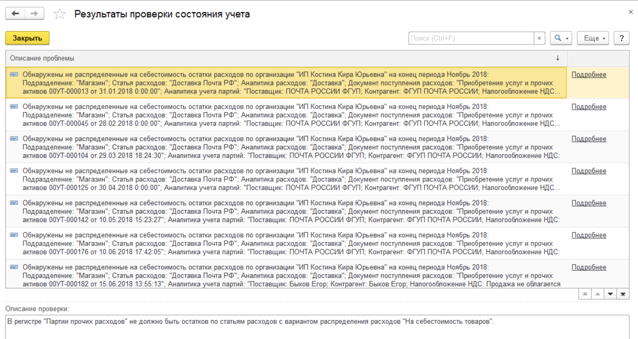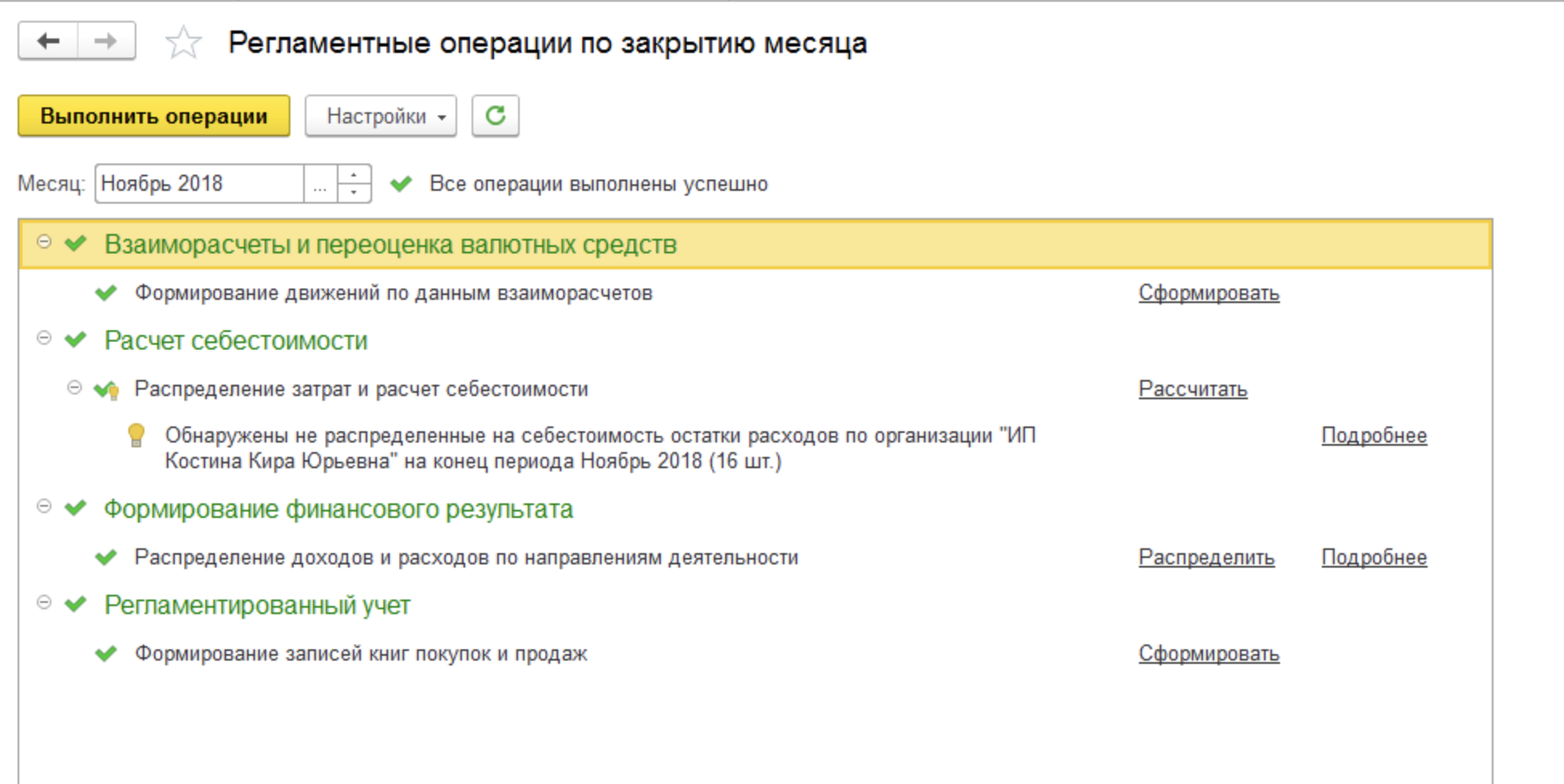 начиная с ноября 2018 закрытие месяца идет с ошибкой в "расчете себестоимости".
