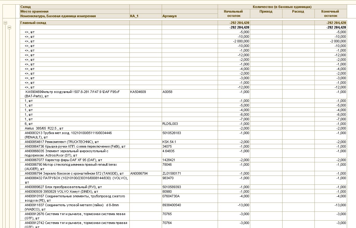 Убрать отрицательные остатки по складу ут 10.3