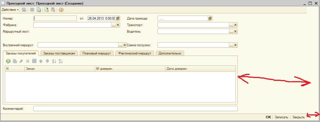 Документ "Проездной лист". Необходимо устранить "косяки" с привязками на форме (см. скриншот). Обеспечить корректную функциональность скрытия и показывания панели по нажатии на кнопку "Действия - Отвесы". Написать, какие изменения необходимо внести в форму для обеспечения корректной работы. Прилагается файл выгрузки БД.