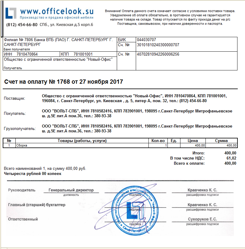 2. Счет с факсимиле