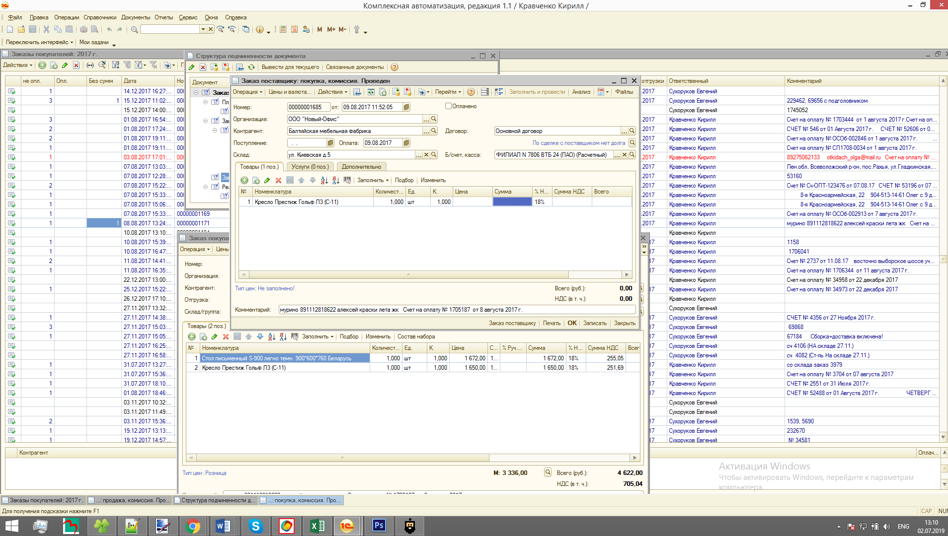 Прикладываю образец. Т.е. к заказу клиента вниз добавляется 4 строчки.