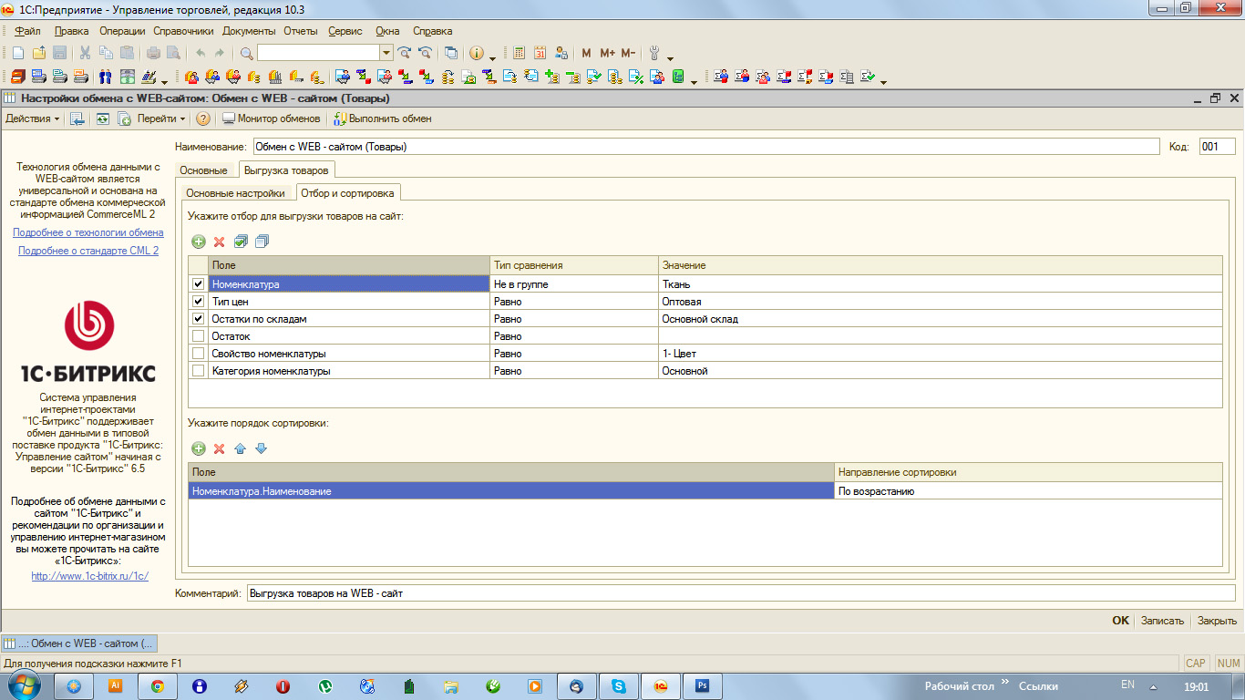 Требуется доработка стандартной выгрузки "Обмен данными с сайтом". Платформа 1С:Управление Торговлей 10.3