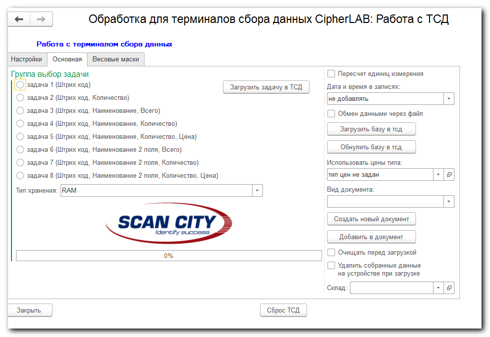 2.2. Но у нас прошивка Скансити, которая без доп. разработки позволяет использовать только 2 поля, шк и количество. В остальном у них своя обработка с предустановленными задачами, и там все построено на загрузке задач в БД и последующей выгрузке данных в документ, - для нас все это избыточно (рис. 05, 06)