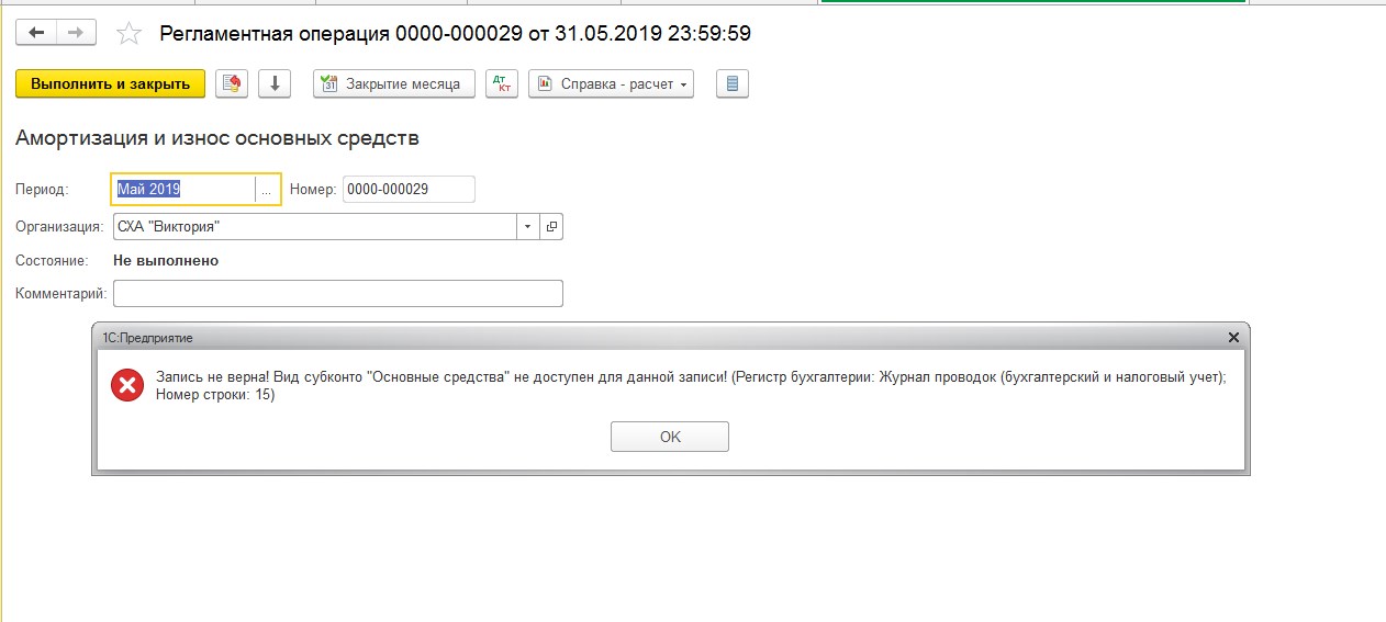 В бухгалтерии не начисляется аммортизация с мая месяца. В апреле начислялась нормально. В мае кокойто сбой и перестало начислять. На 01 и 02 обороты есть. Линейный способ.