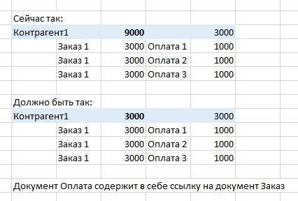 Документ Оплата содержит в себе ссылку на документ Заказ.