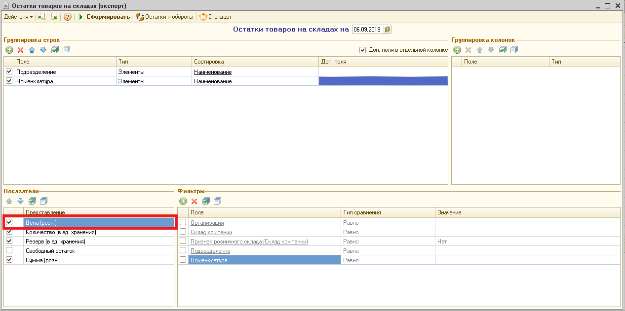 Есть отчёт в альфе, называется "Остатки товаров". В отчёт выводиться только розничная цена. Надо чтобы тип цен, для отчёта, можно было выбрать из справочника цен.