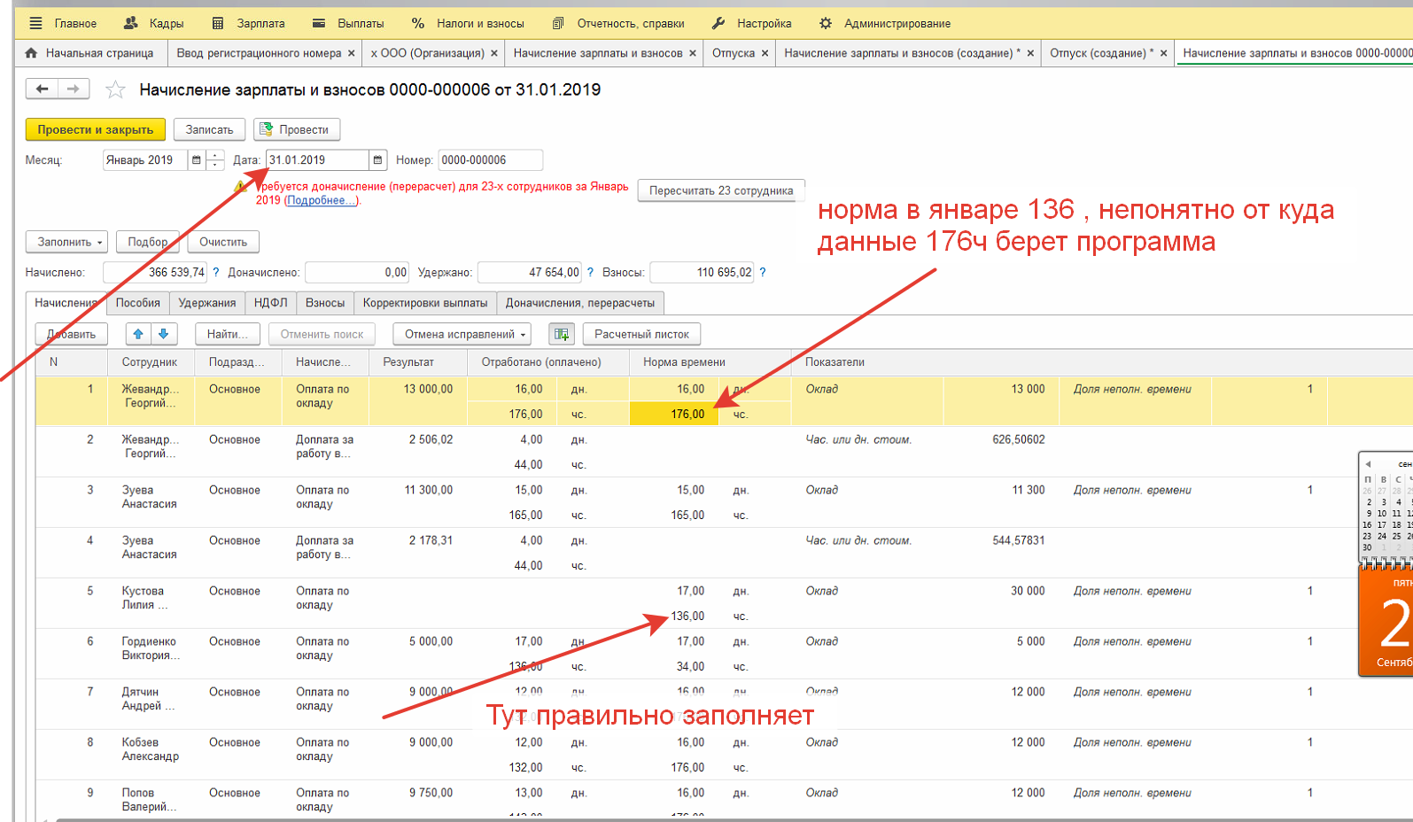 ЗУП 3.1 проблема с начислением ЗП и взносов сотрудникам
