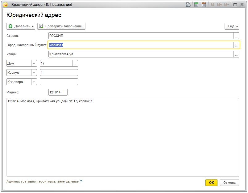 - адрес должен раскладываться по полям адресного классификатора (регион, улица, дом и т.д.)
