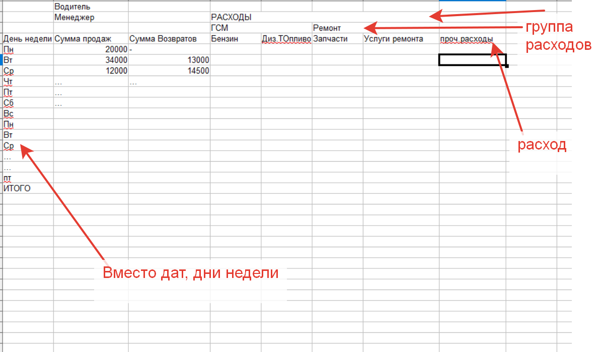 В документах Реализация, Возврат покупателю, Расходный кассовый ордер, добавлены реквизиты с типом справочник "Физические лица" (в записях по регистрам не участвуют), необходимо разработать отчет с отбором за период и по Водителю и менеджеру, который выведет данные по продажам возвратам и расходам по статьям расходов. Справочник статьи расходов Иерархический, группировка в колонках. Пример на картинке во вложении