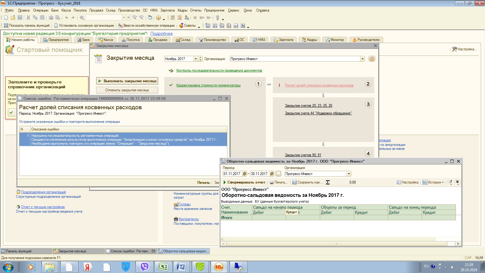 Ввод начальных остатков на 31.12.2017 я ввел вручную