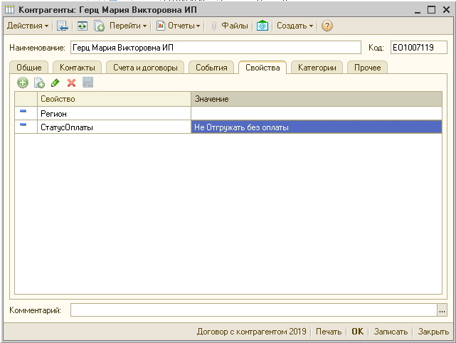 Из свойств контрагента СтатусОплаты выводить ЗНАЧЕНИЕ