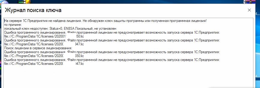 Ошибка программного лицензирования. Файл программной лицензии не предусматривает возможность запуска сервера 1С:Предприятия.