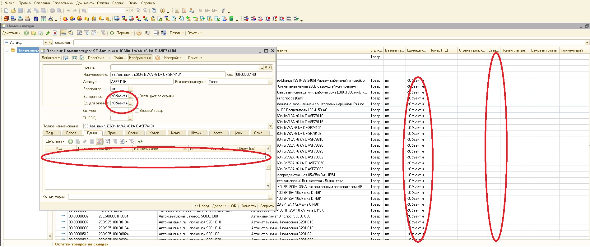При переносе данных из одной конфигурации 1С в другую произошла потеря части данных по Номенклатуре, таких как: