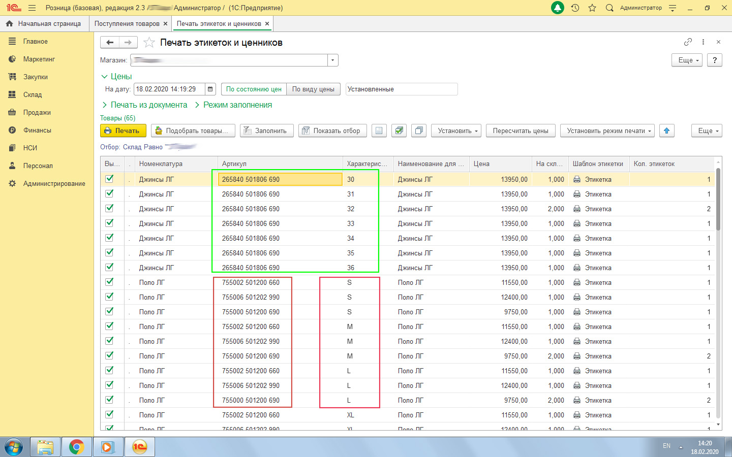 Розница 2.3 в Печать этикеток и ценников сделать сортировку по артикулу