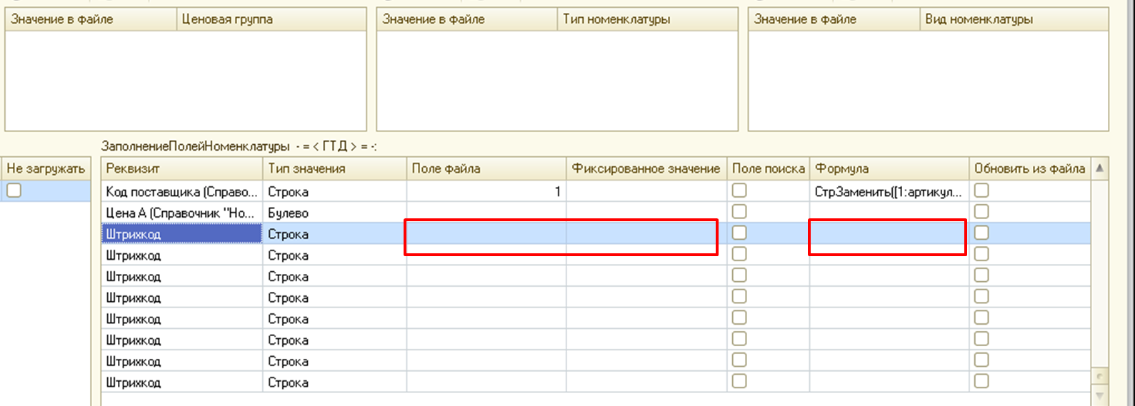 И в справочник штрих кодов попадает всякая ерунда. В других реквизитах если эти поля(в обработке) пустые то не заполняется ничего.