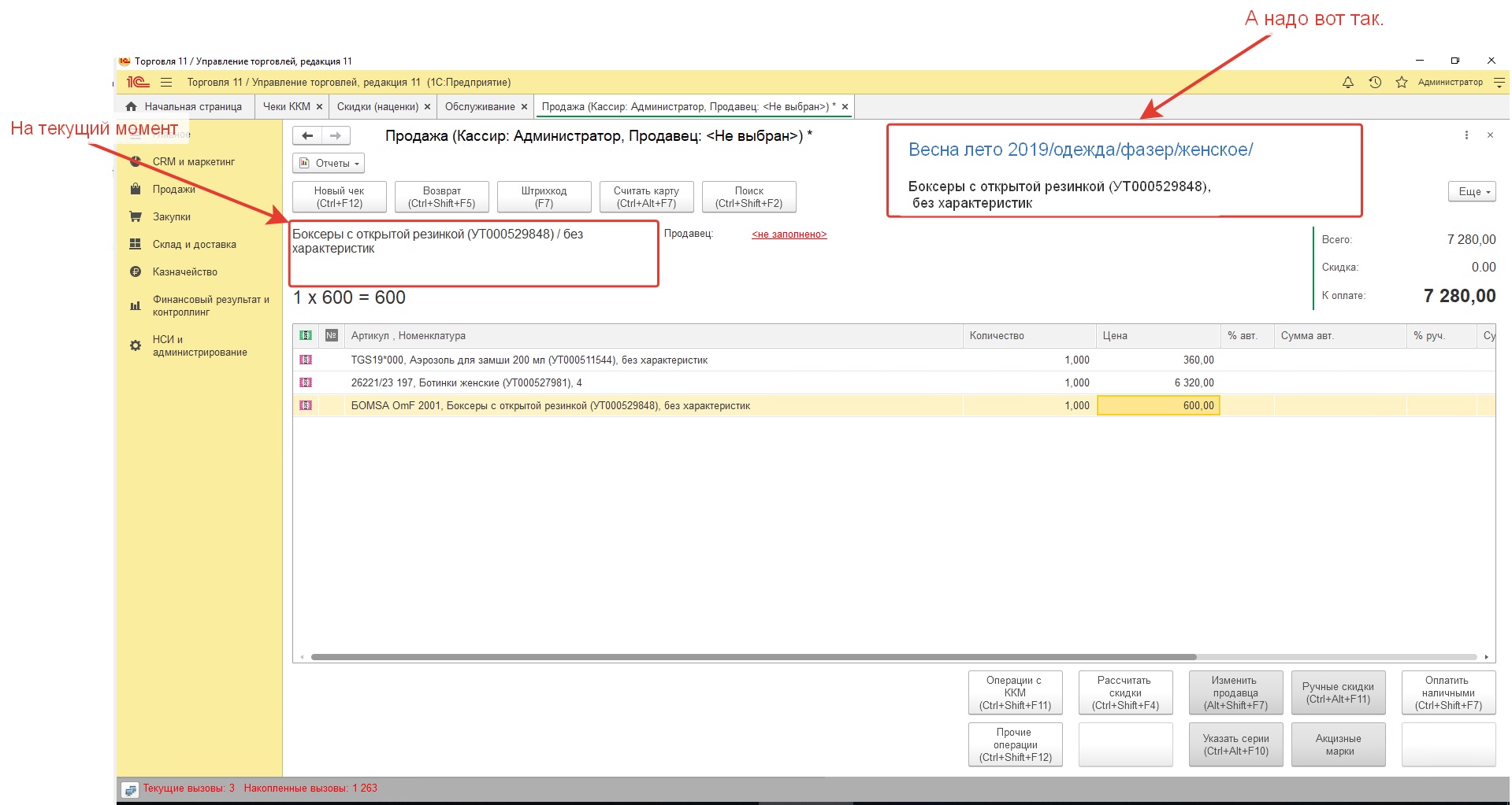 2. Печать чека ККМ на фискальном регистраторе с Артикулом. (думаю что через расширение 1с, не нашел где можно настроить)