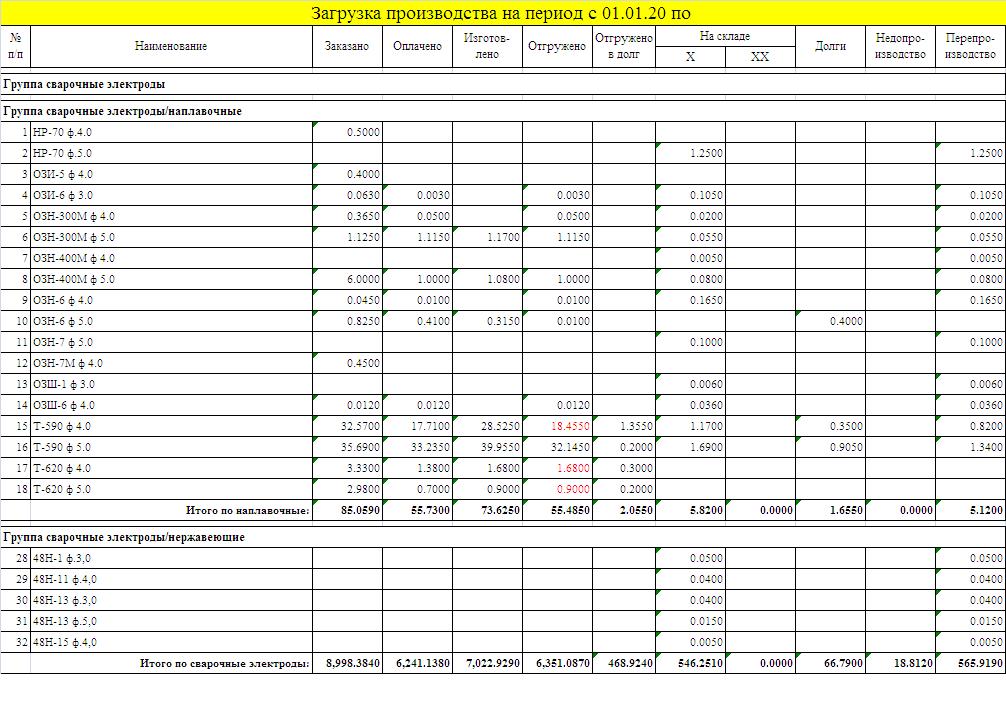 -- недопроизводство – вычисляемый количественный показатель единицы номенклатуры, полученный как показатель «на складе» - «долги» < 0 по модулю.(выделить красным цветом)