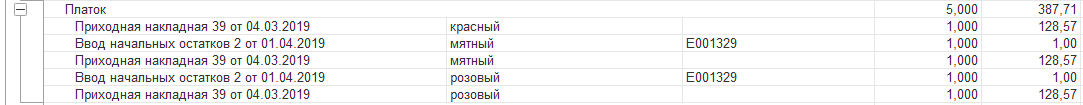 В отчете по каждой номенклатуре должен отображаться список документов с кол-вом и ценой в документе.