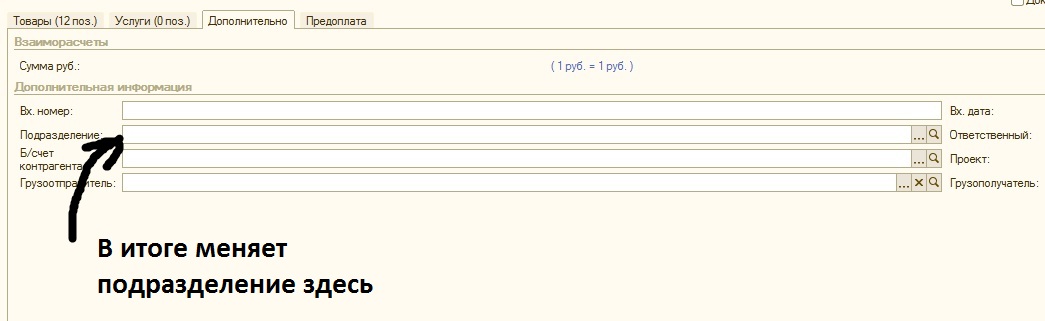 1. В задаче №1 нужно сделать так, чтобы была возможность пакетно менять подразделение во вкладке "Услуги" в документах "Поступление товаров и услуг"