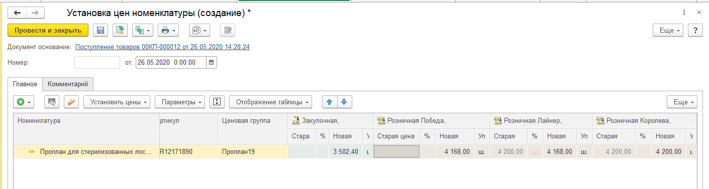 Установка цен номенклатуры 1С Розница, проблема с установкой цены.