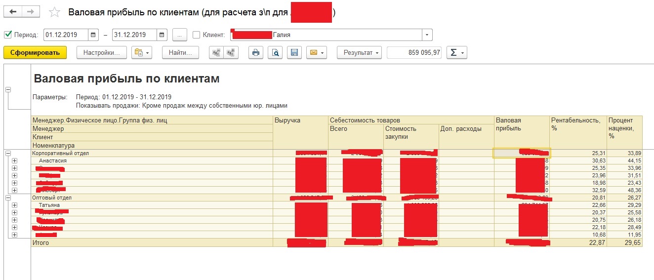 Отчет по валовой прибыли в 1с: управление торговлей ред.11