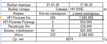 Есть 1С 7.7 самописная (вроде на основе ТиС). Нужно в ней сделать простенький отчет, показывающий количество расходных накладных за период по выбранному складу, сумму по этим накладным и средний чек - общя сумма накладных деленная на количество накладных.