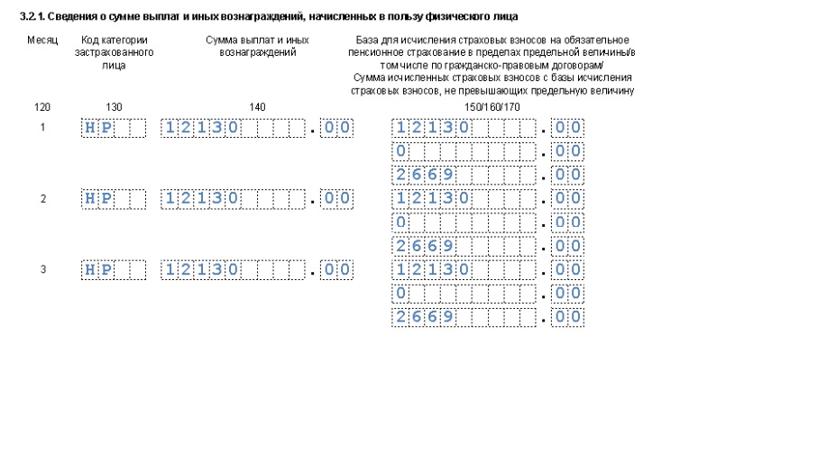 Подраздел 3.2.1 раздела 3 второго листа по застрахованному лицу:рис 2