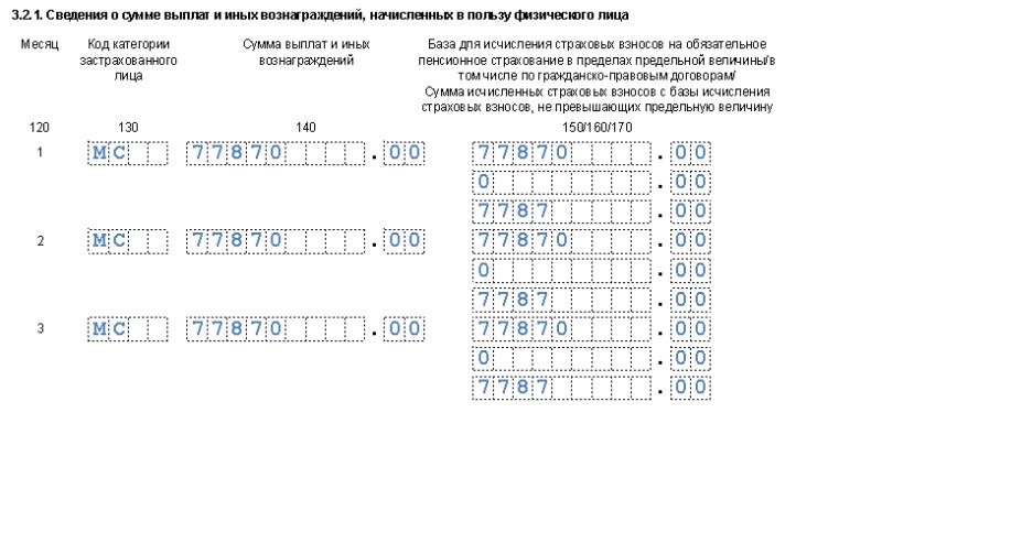 В разделе 3 бухгалтер заполнила несколько листов на каждое застрахованное лицо нарастающим итогом с начала года.