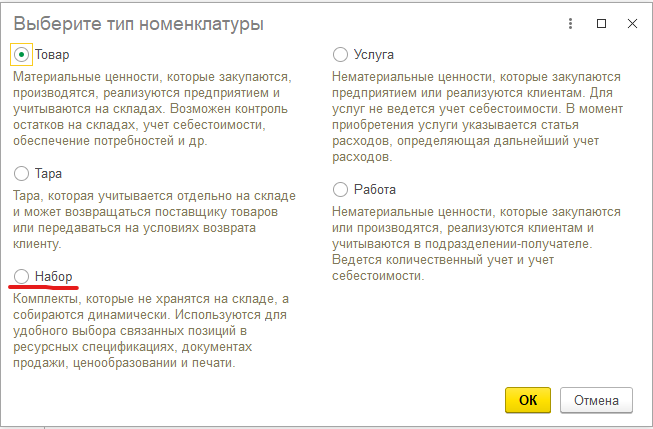 В 1С КА 2.4 есть тип номенклатуры "Набор". У этого типа номенклатуры существует такой параметр как "состав набора" относящийся к справочнику "варианты комплектаций номенклатур". В моей таблице Excel есть колонка Наименование набора, и наименование номенклатур из которых он состоит. Все уже занесено в справочник Номенклатур. Задача разработать внешнюю обработку для указания из какого перечня номенклатур состоит набор.