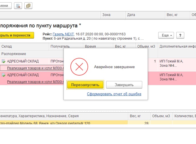 При работе с определённой формой в блоке «Склад и доставка» у ключевого сотрудника (логиста) регулярно происходит аварийное закрытие 1С. Отчёт в Windows показывает, что с этим связана библиотека frame.dll. Обновление платформ до всех последних актуальных проблему не решило.