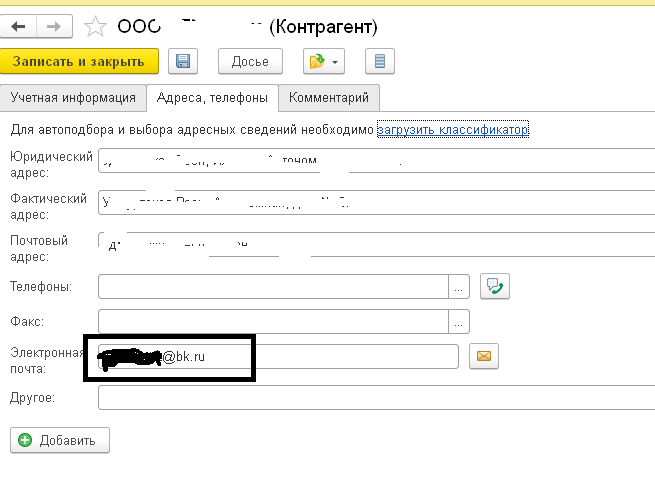 В Рознице 2.3 - автоматическое подставление email при отправке печатной формы