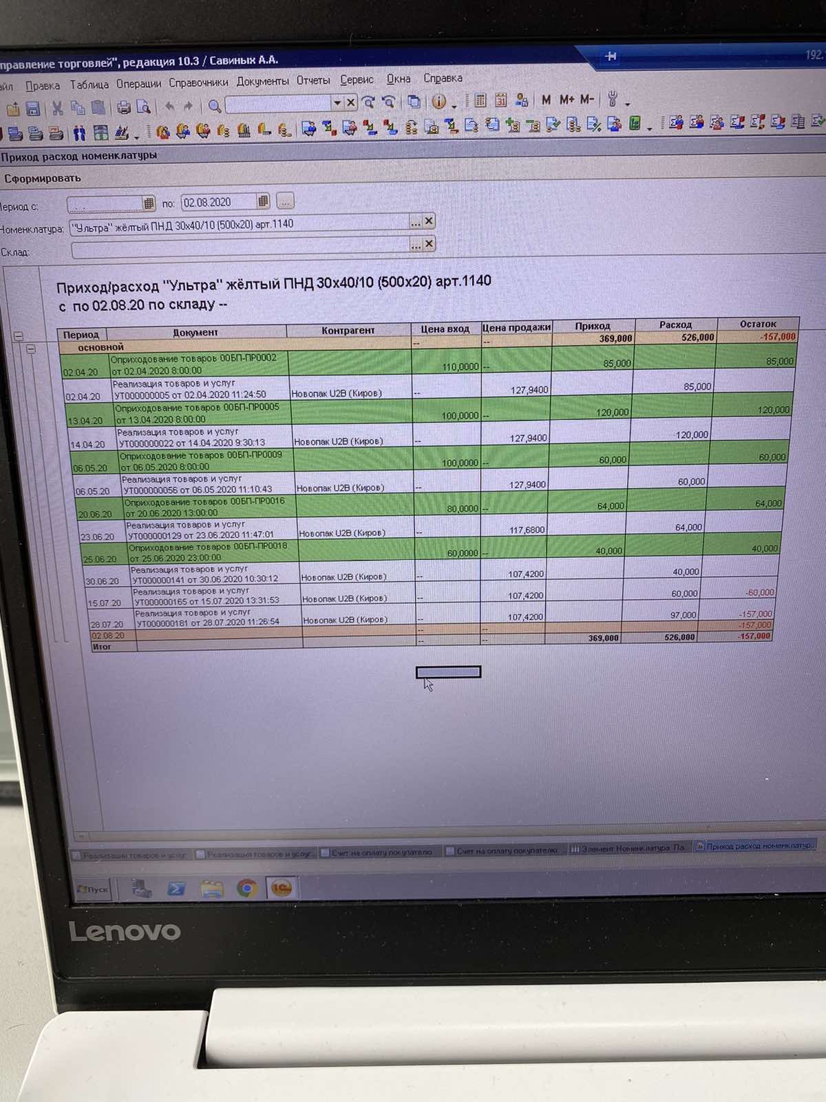 2) Добавить кнопку приход/расход в карточке номенклатуры, при нажатии которой формируется отчет в которой видно цена входа, цена продажи, даты прихода и расхода с количеством.