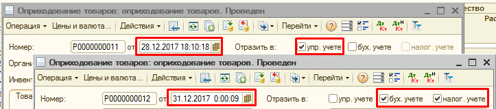 1. Доработать движения документов по регистру Товары организаций таким образом, чтобы документы без флага Отразить в упр учете не делали движений.