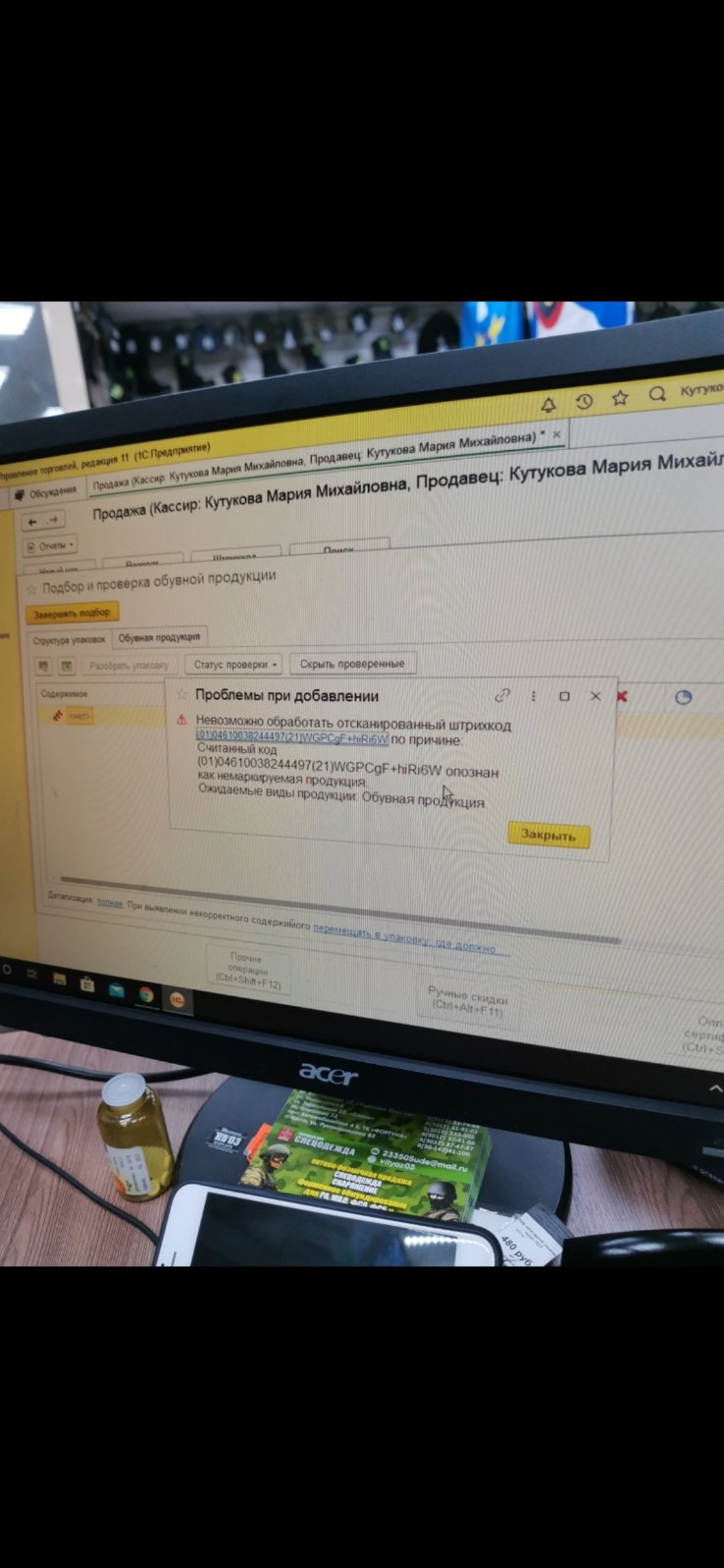 При продаже обуви , 1С УТ 11 не нравится марка(штрих код)